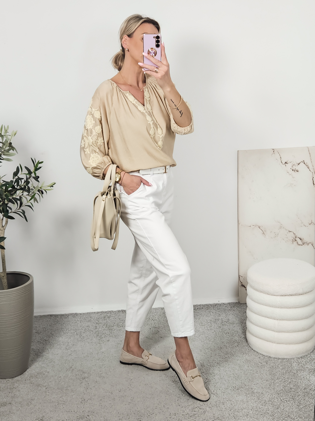 Bluzka camelowa z haftami BOHO