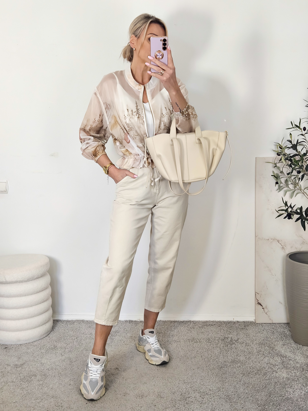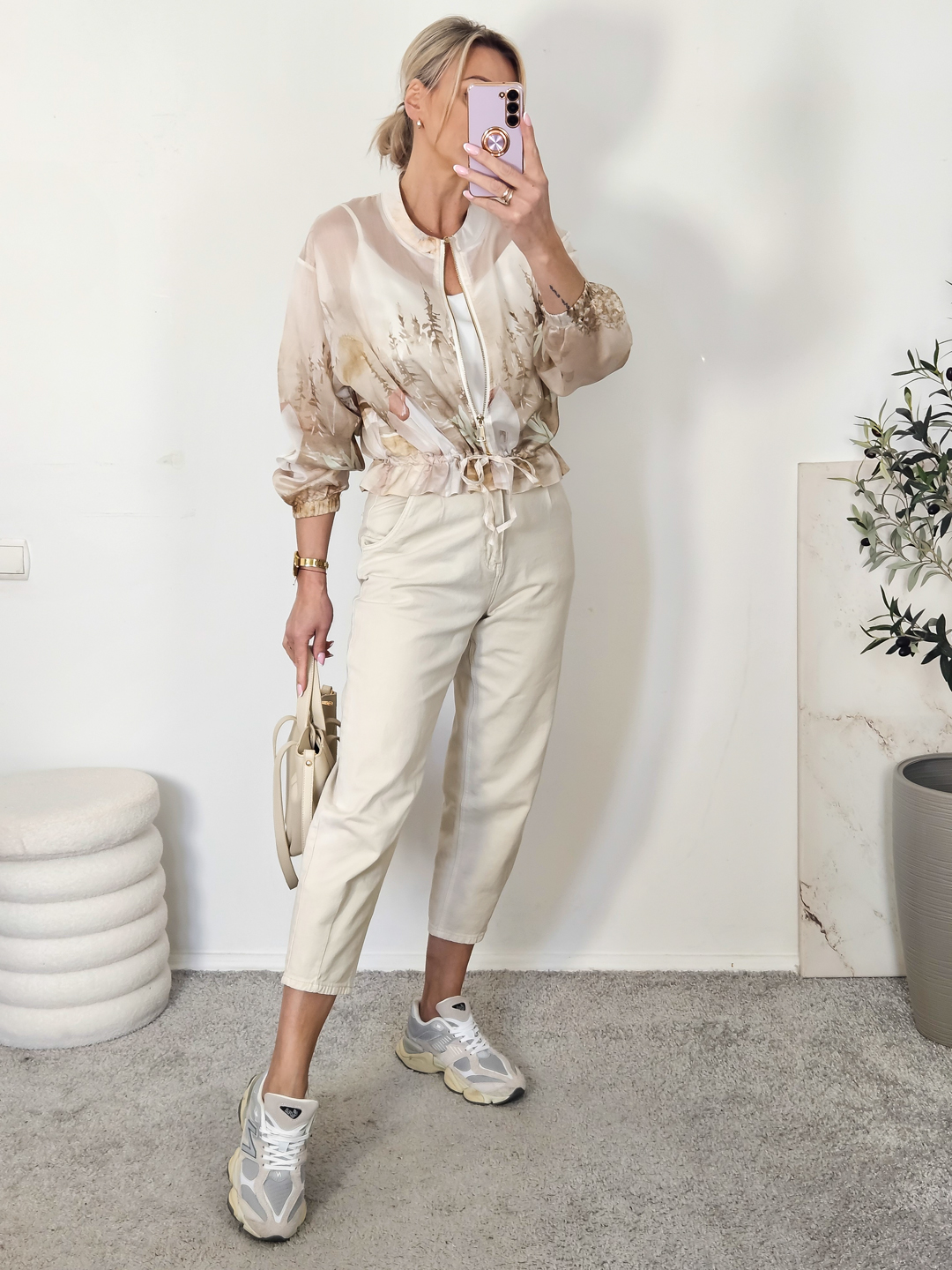 Bomberka wykonana z cieniutkiego ,przewiewnego materiału.Zapinana na zamek .W pasie ściągana troczkiem.