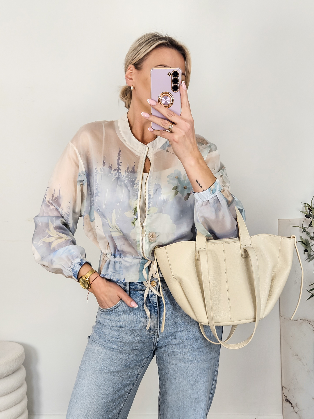 Bomberka wykonana z cieniutkiego ,przewiewnego materiału.Zapinana na zamek .W pasie ściągana troczkiem.