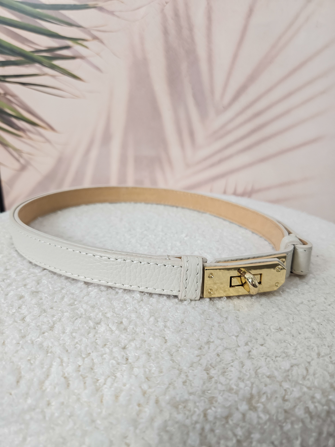 Pasek wykonany ze skóry naturalnej. Wąski fason podkreśla kobiecą sylwetkę, a możliwość regulacji pozwala idealnie dopasować pasek do obwodu talii lub bioder. Świetnie sprawdzi się zarówno do eleganckich sukienek, jak i codziennych jeansów czy spódnic.