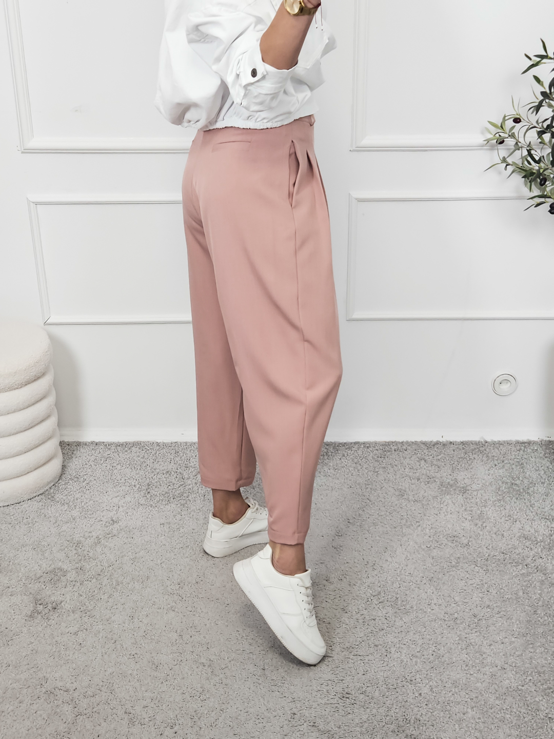Eleganckie spodnie o fasonie Balloon i krótszej nogawce.