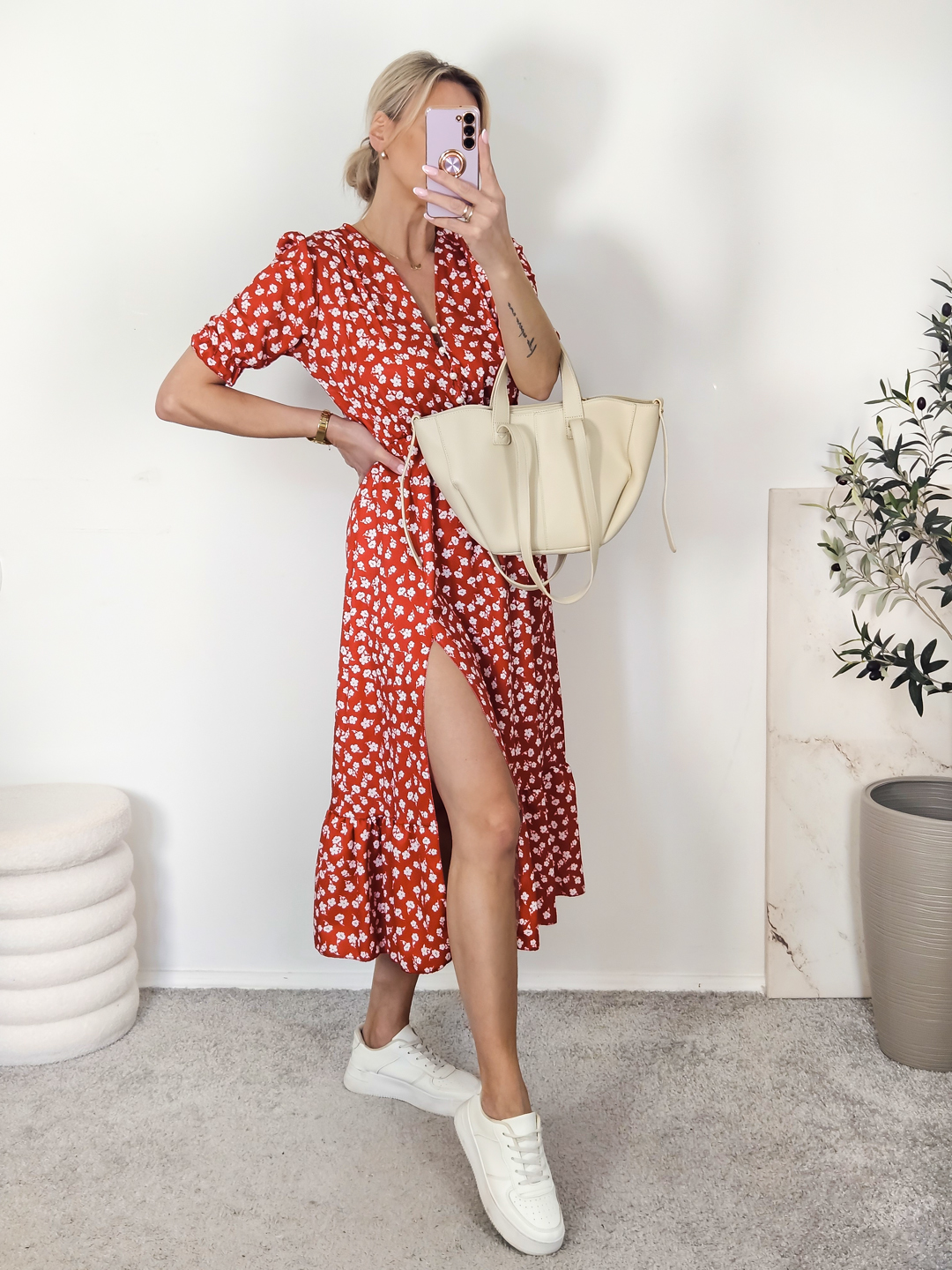 Rozcięcie na boku . Model posiada także gumkę w talii. Rozmiar uniwersalny.
