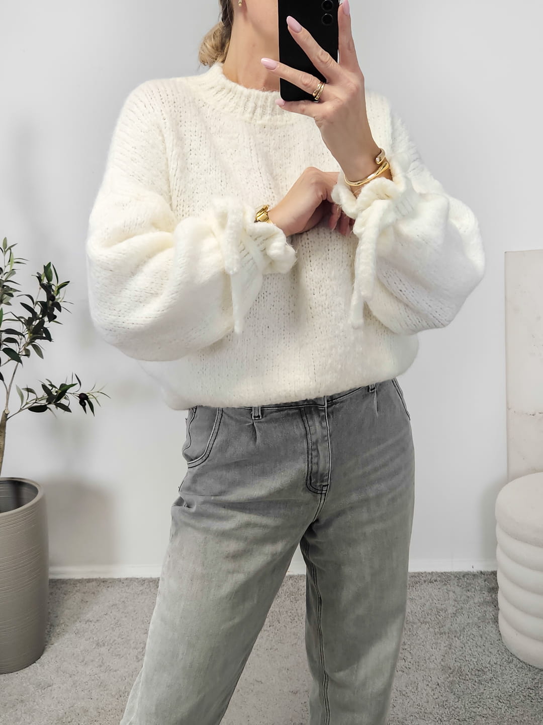 Sweterek VELVET falbanka ecru
