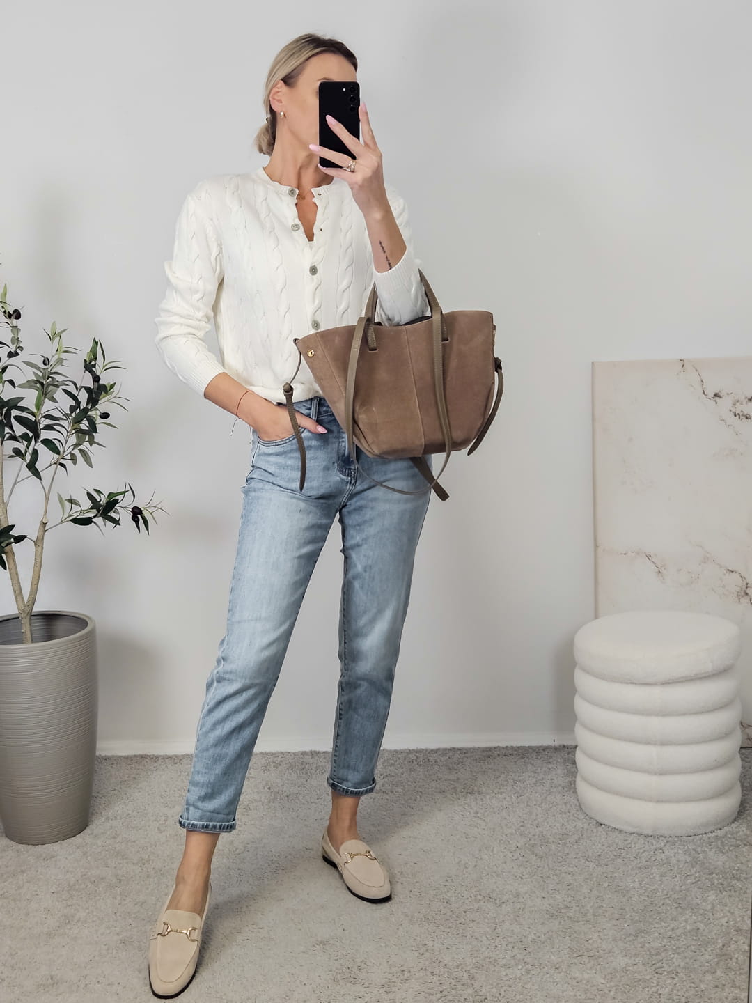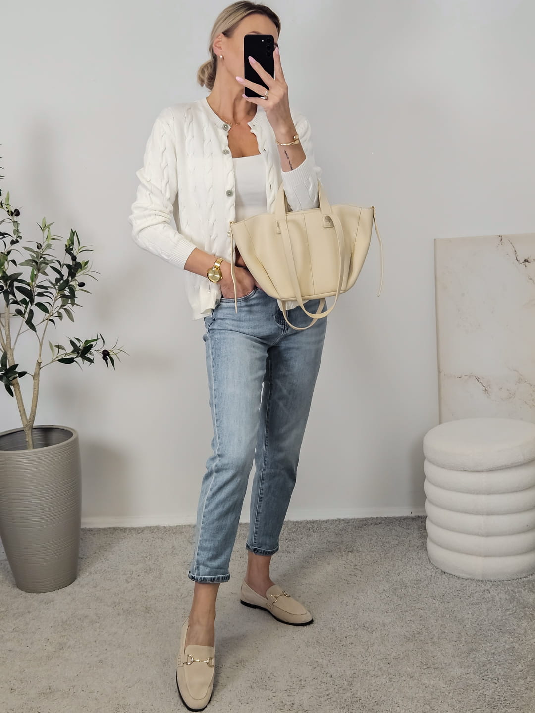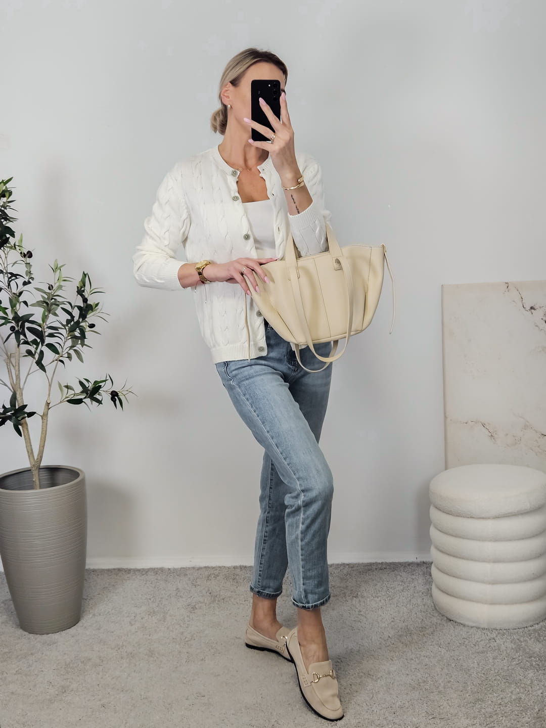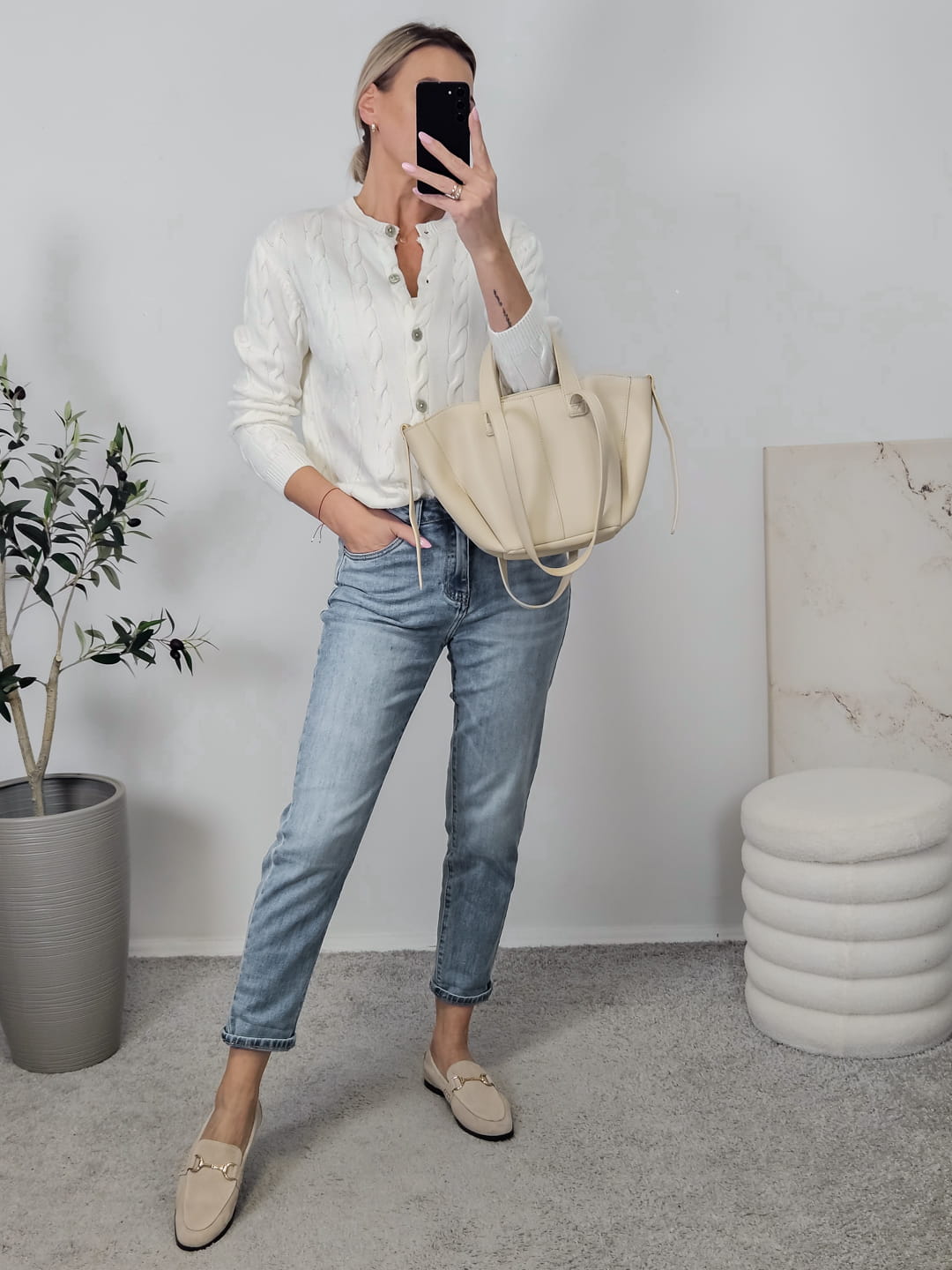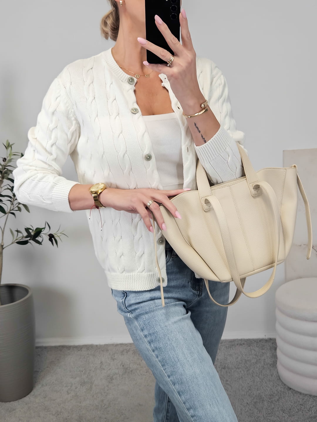 Sweterek WARKOCZ na guziki ecru